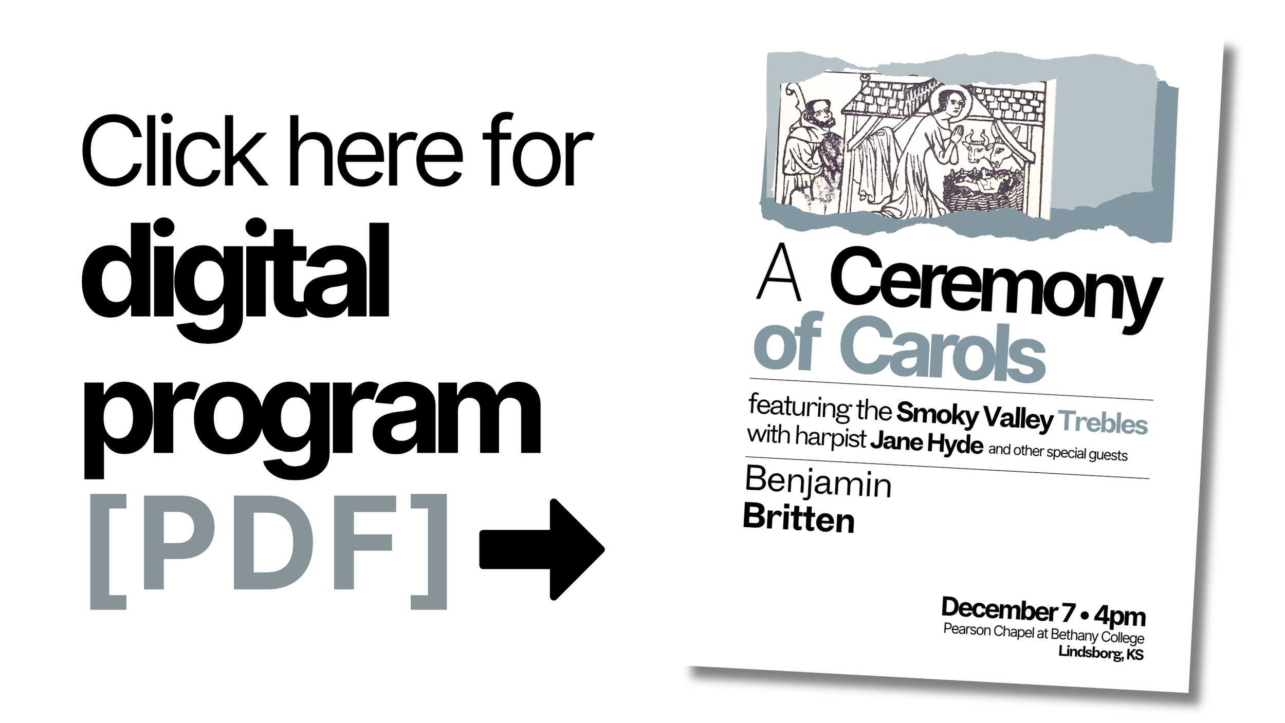 The Smoky Valley Trebles, a community treble choir in Lindsborg, KS, will perform Benjamin Britten’s Ceremony of Carols on Sunday, December 7 • 2025.